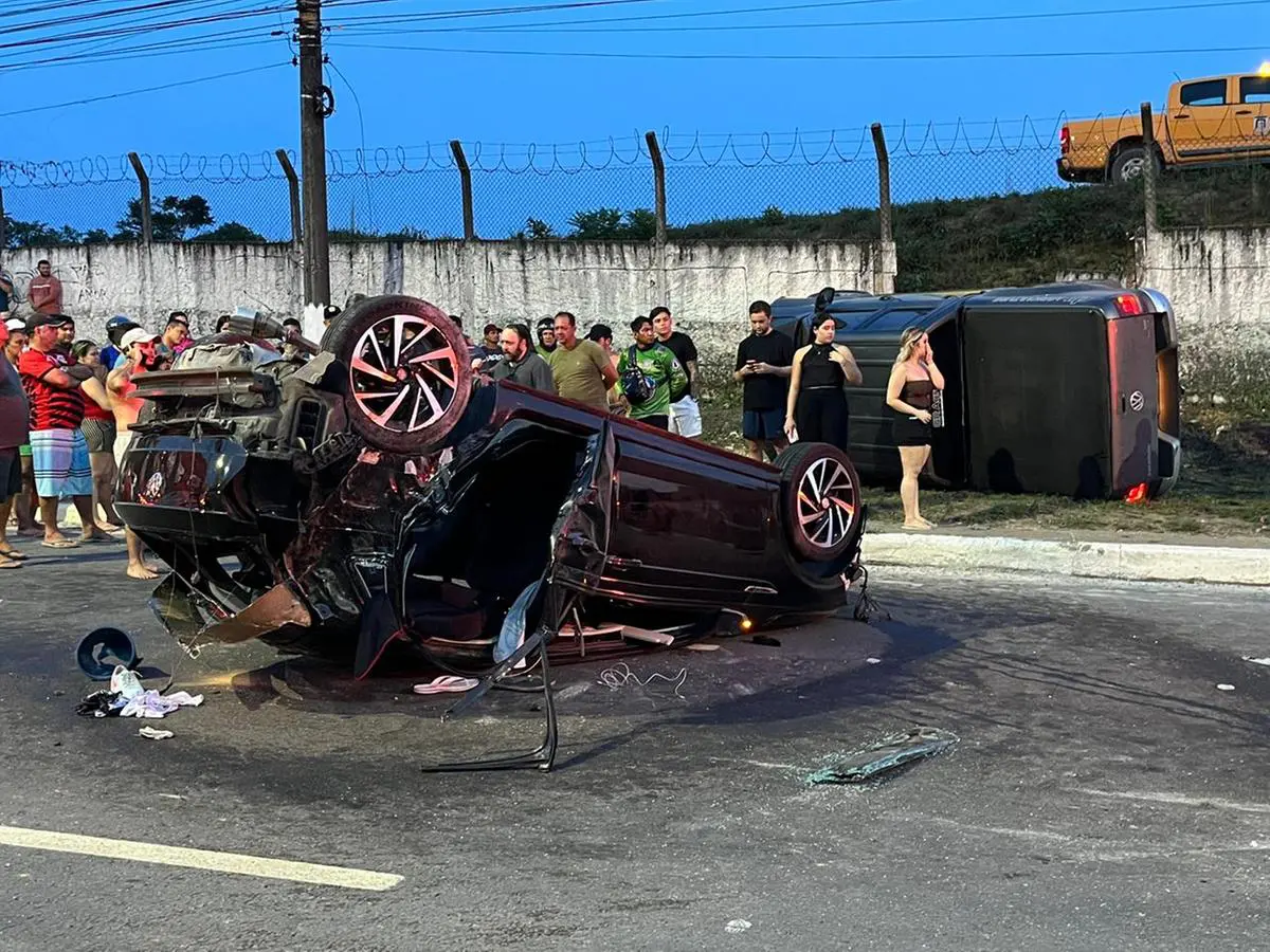 Segundo testemunhas, carros disputavam um racha quando bateram em um terceiro carro, que ficou de cabeça para baixo na via