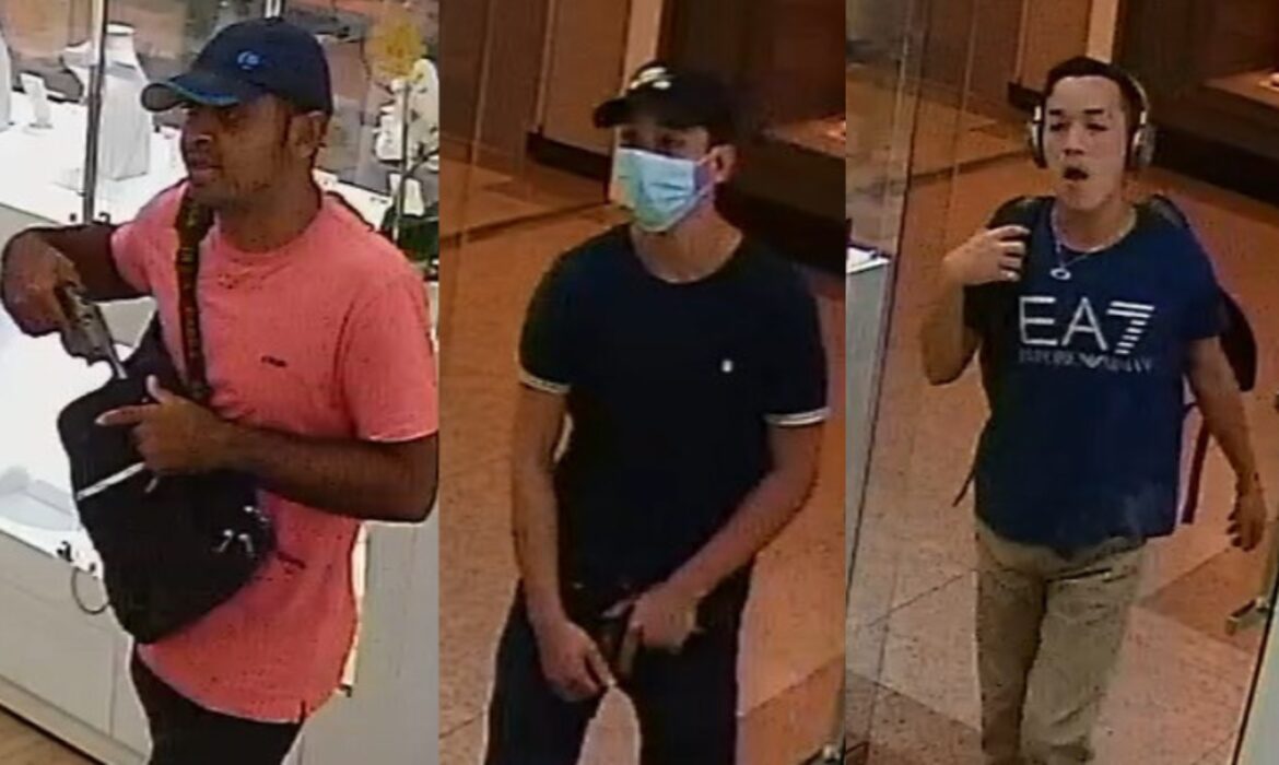 Imagens mostram suspeitos bem vestidos; um deles usava máscara cirúrgica para dificultar identificação