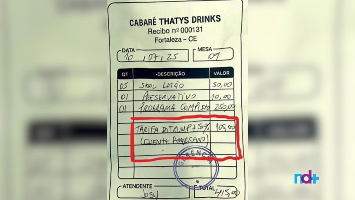Um recibo de um cabaré em Fortaleza viralizou nas redes sociais ao incluir uma inusitada “Tarifa do Trump” …